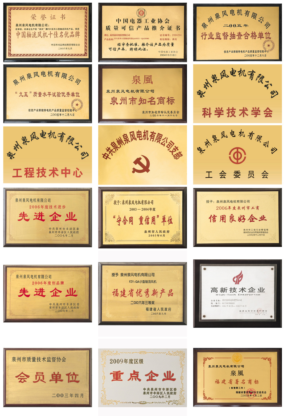 2002年度被中國技術協會評為“風機行業質量十佳放心品牌”稱號.