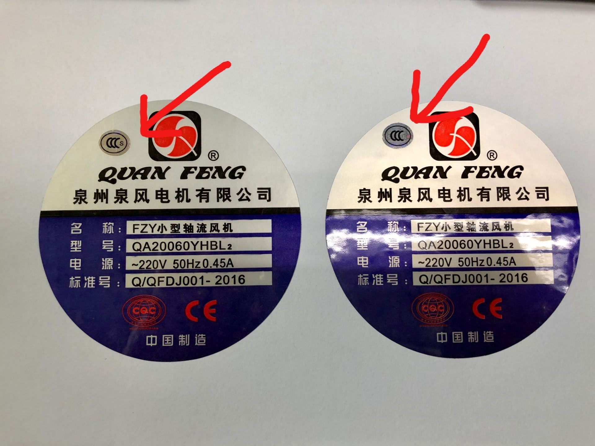 泉州泉風(fēng)電機所以系列產(chǎn)品,產(chǎn)品商標上所貼CCC標志,在一段時間內(nèi)會出現(xiàn) CCCs和CCC,兩種標志。